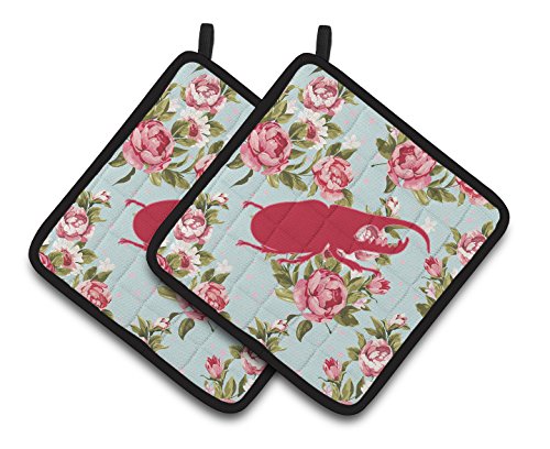 Caroline's Treasures Beetle Shabby Chic Blue Roses Pair of Pot Holders BB1056-RS-BU-PTHD, 7.5HX7.5W, Multicolor