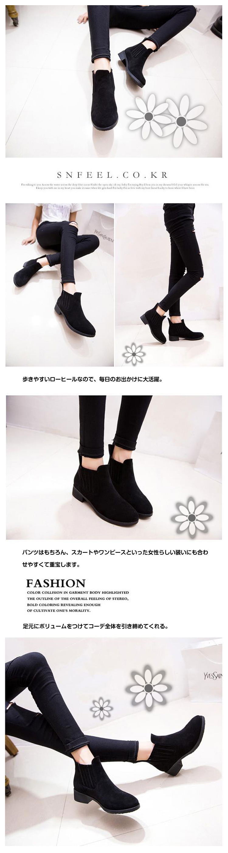 | 今年のトレンドを感じさせるデザインが目をひく、サイドゴアブーツの登場です。飽きのこないシンプルなフォルムに、サイドの幅広ゴムでアクセントをつけました。おしゃれなルックスだけでなく、すぽっと着脱できる履きやすさも魅力です。歩きやすいローヒールなので、毎日のお出かけに大活躍。パンツはもちろん、スカートやワンピースといった女性らしい装いにも合わせやすくて重宝します。足元にボリュームをつけてコーデ全体を引き締めてくれる。 | |