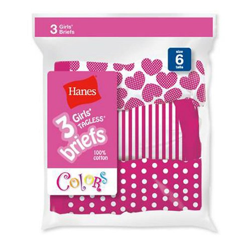 Hanes Girls Cotton Brief P3BRMP 10 Assorted 3-Pack