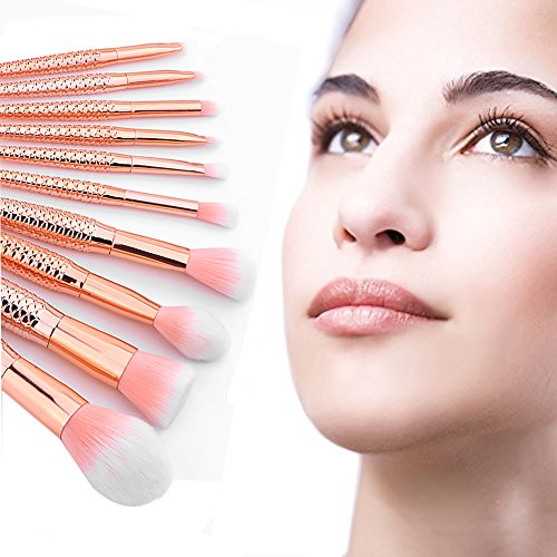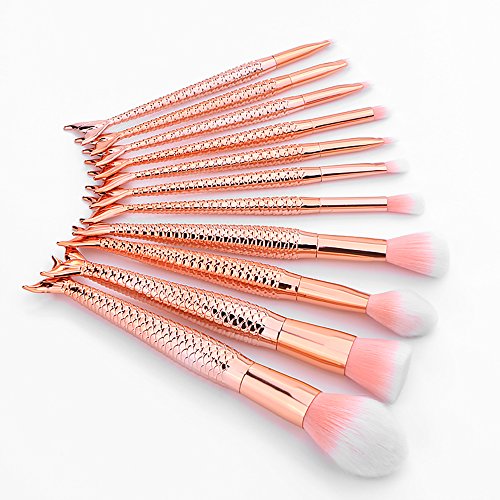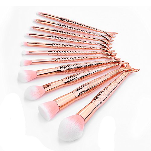 Niceshop 10pcs Mermaid and Professional Makeup Brush Set Cosmetics Tools Beauty Tools Foundation Blending Powder Eyeshadow Contour Concealer Blush Cosmetic Makeup Tool (Rose Gold)