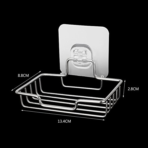 Soap Dish Holder for Bathroom Shower, Self Adhesive Soap Storage Saver, Stainless Steel Easy Drain Design Sponge Holder