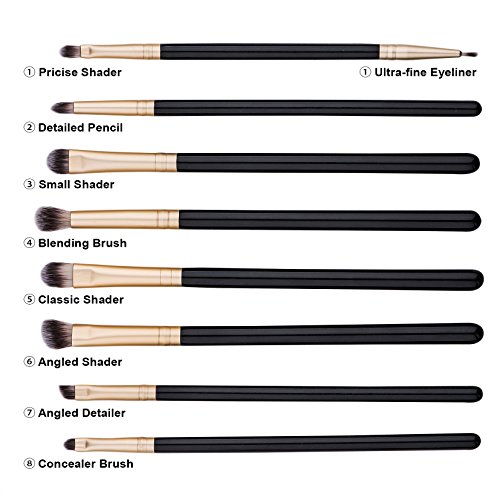 MAKEUP EYE BRUSH SET includes 8 professional quality SYNTHETIC eye brushes. Perfect for applying, shading and blending products. This basic eyes kit is ideal for all over eye makeup application. You will love this essential makeup brush set which includes eye shadow brushes, eye liner, eye pencil and blending brush.
