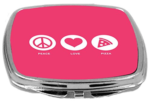 Rikki Knight Peace Love Pizza Design Compact Mirror, Tropical Pink, 2 Ounce