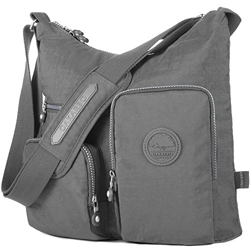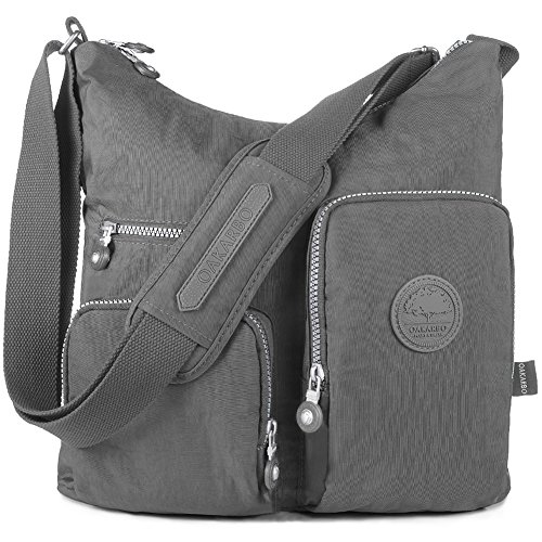 Product Description Oakarbo says You need a do-it-all crossbody bag in your life and here it is. It's made with crinkle nylon to keep it lightweight and long-lasting and adorned with a couple of zip pouch pockets on the outside for extra convenience. Versatile, functional and durable, this nylon shoulder bag is a primo pick for travel and everyday errands. Product overview * DURABLE LIGHTWEIGHT: shell 100% crinkled nylon / lining 100% polyester * ROOMY COMPARTMENT: 1 main zippered compartment roomy enough for all of your daily essentials * INSIDE POCKETS: 1 back wall zip pocket, 2 slip pockets(cell phone and cards) * OUTSIDE POCKETS: front zip pockets for handy essentials, 1 back zip pocket for valuables * COMFORTABLE STRAP: (1204940:29.5 - 59 in) Adjustable shoulder strap allows you to wear the bag over your shoulder or as a crossbody * BEST USE: casual; travel; everyday * DIMENSION (L x W x H): 1204-12.5 x 4.7 x 11.8 in / 32 x 12 x 30 cm; Weight: 0.88 lb / 0.4kg 940-15.7 x 3.5 x 9.4 in / 40 x 9 x 24 cm; Weight: 0.66 lb / 0.3 kg Care instruction Hand wash cold with soft brush mild detergent Dry in the shade 0