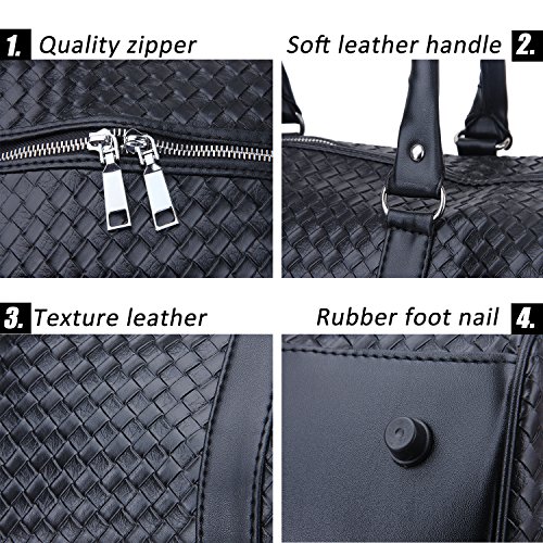 -. Title : SYKT Leather Holdall Travel Lage Duffel bags Weekender Bag(BLACK)
