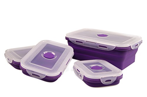 Aquiv Silicone Collapsible Lunch Container Box with Lid, Food Storage, Set of 4 Pcs, Purple