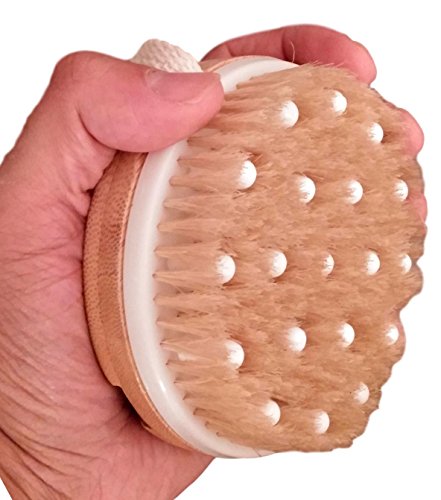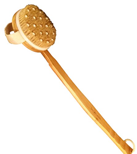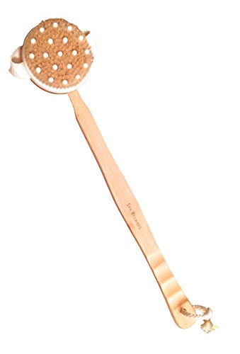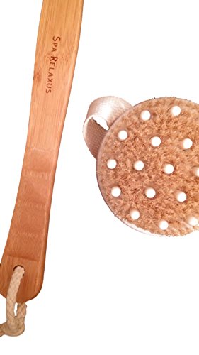 Spa Relaxus Large 2-in-1 Massaging Bath Brush. Removable Head. Bamboo Handle. 4.3" x 20.7"