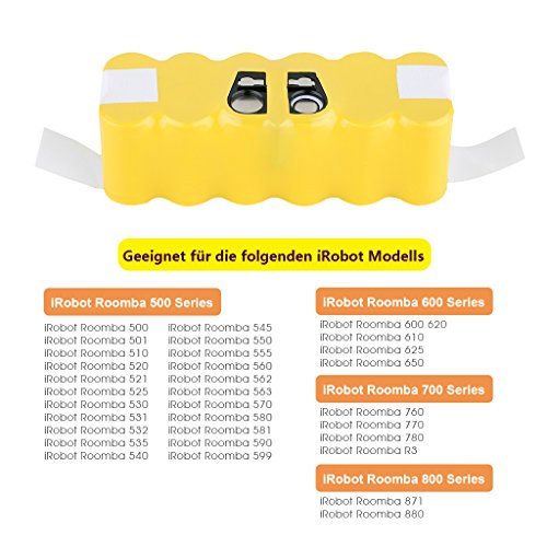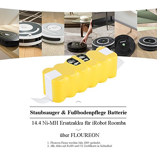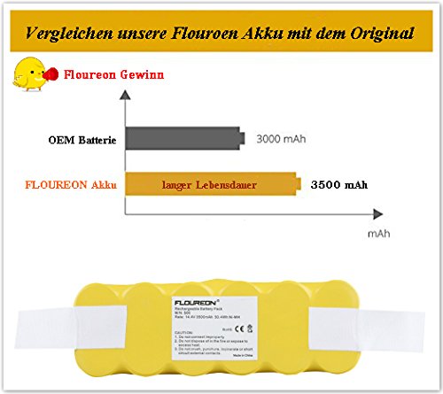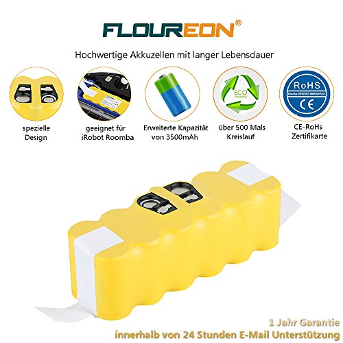 FLOUREON 3500mAh 14.4V Akku NI-MH Staubsauger-Akku fur iRobot Roomba 500, 600, 700 und 800 Series 581 555 531 564 620 650 681 760 770 776 780 871