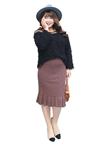 -. Title : Honeystore スカート ニット レディース タイト オフィス 冬 ひざ丈 ペンシル シルエット フリル 大きいサイズ
