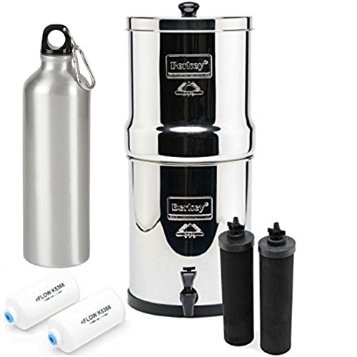 Big Berkey Water Filter System 2.25 Gallon with 2 Black Berkey Purifiers and 2 Fluoride Filters and Aluminum Sports Bottle 25 Ounce