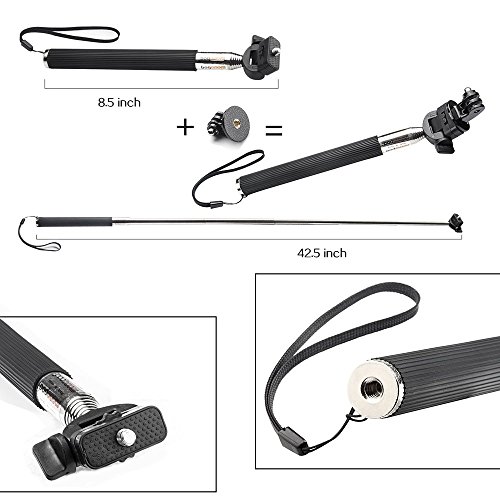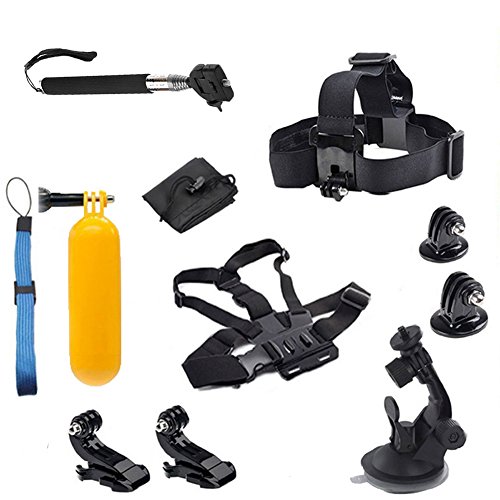 ShineKee Accessories Kit for All GoPro HERO 4 3+ 3 2 1 Session LCD Black Silver. Selfie Pole, Car Mount, Head/Chest Strap