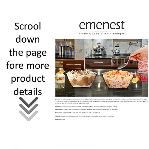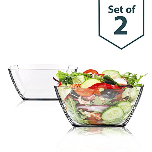 Product DescriptionSquare Clear Thick Glass Bowls, Set of 2 - For Serving Salad, Fruit, Desserts and Party (Dishwasher Safe)0