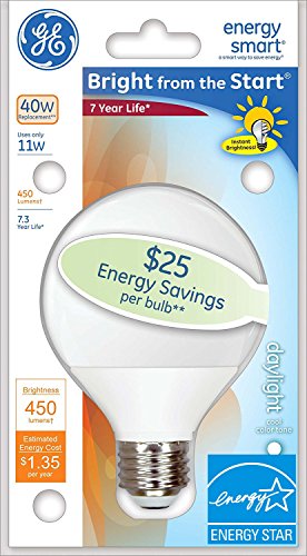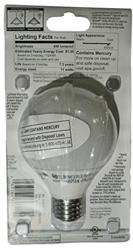 GE Energy Smart "Bright from the Start" CFL 11-Watt (40-Watt Replacement) 450-Lumen G25 Light Bulb with Medium Base, 4-Pack