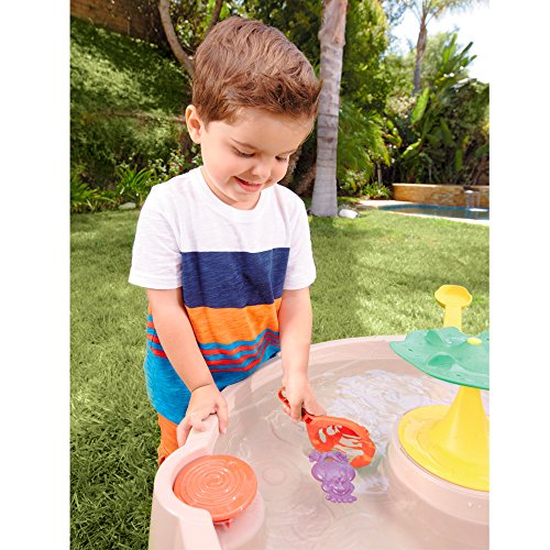 Flip into fun with the Little Tikes Leaping Frog Water Table! Launch colorful frogs onto the lily pads on the center leaf tower. Turn the spinner to activate the "lazy river." Perfect for outdoor fun on a hot day, water activity tables are great for sensory activities and group play. Kids can splash and play with this large water table alone or with friends. Plus, it comes with an easy-drain plug for easy clean-up