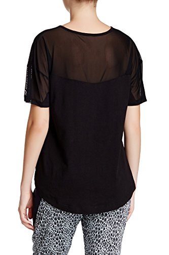 Betsey Johnson Women's Mesh Insert Tee (Medium, Black)