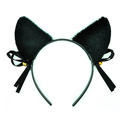 OULII CAT EARS HEADBAND GIRLS CUTE HEAD BAND WITH BOWKNOT AND BELL FANCY DRESS COSPLAY PARTY (BLACK)