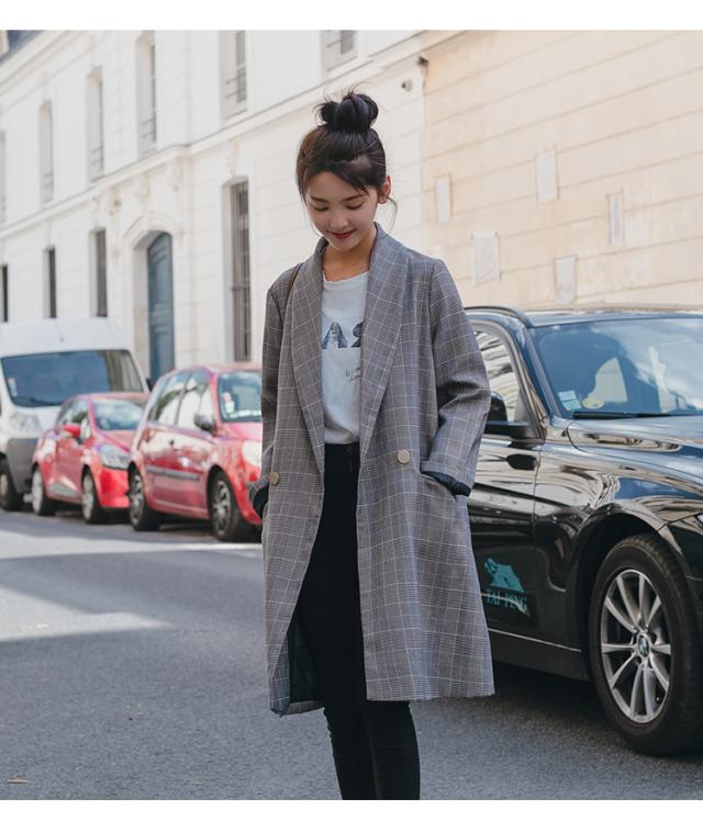 マニッシュに決まる、グレンチェック柄のロングジャケットです◎