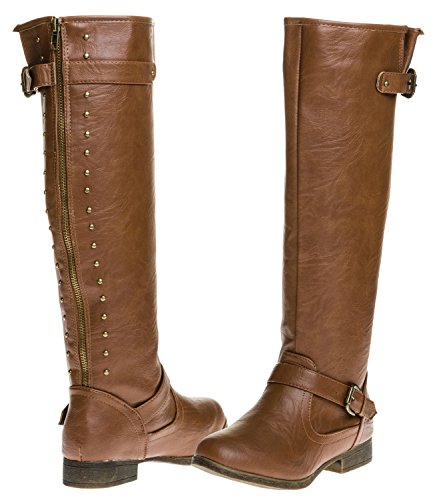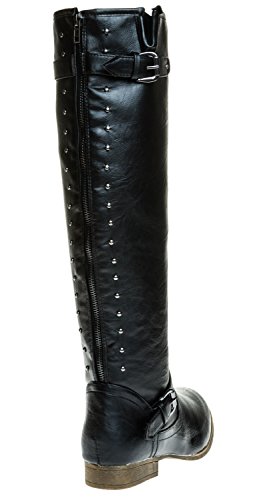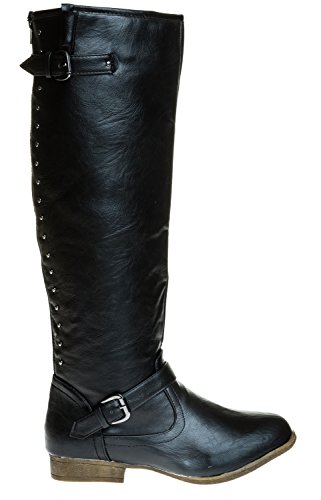 Binding : Apparel Product Description Tall, dark and gorgeous. These edgy faux-leather beauties can go just over the knee or you can fold down the cuff for even more flair. Two rows of glinting studs run up the back from the ankle to the top, echoed by the single silver-tone buckle at the outside ankle. Low heels complete the equestrian-ready look, and the full-length back zipper make easy to slip these on and off 0