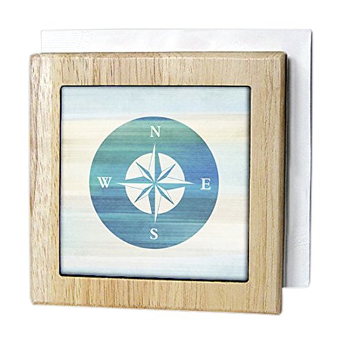 3dRose nh_152107_1 Aqua Nautical Compass Beach Theme Art Tile Napkin Holder, 6", Natural