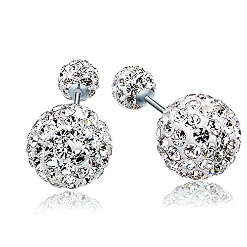ODETOJOY 1 Pair Luxury Double Sided Crystal Pearl Beads Earrings Ear Studs Tribal Earrings for Women