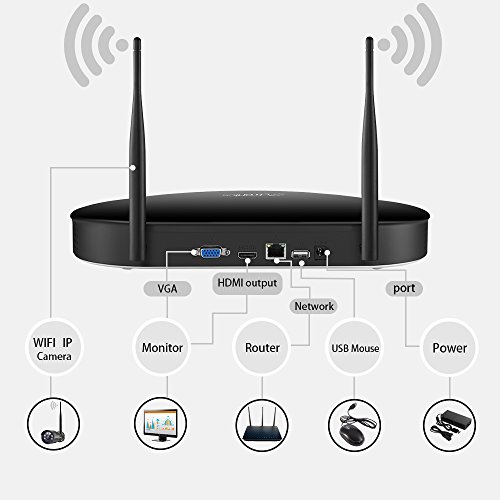 Ctronics 2.4G HD Wireless NVR System WIFI Security Cameras System with 4*960P Wireless Indoor&Outdoor Waterproof Night Vision Cameras