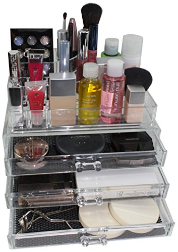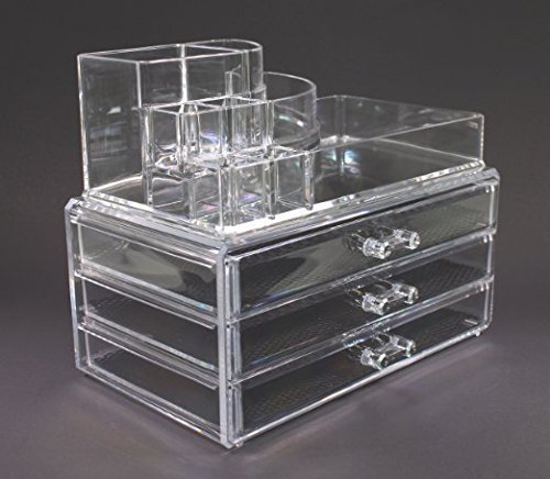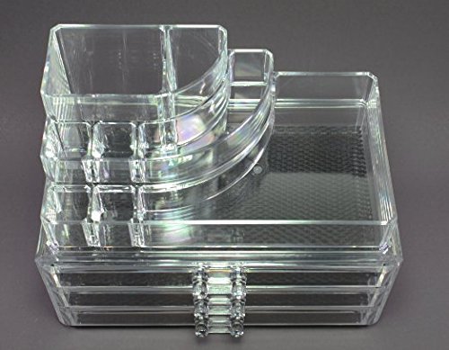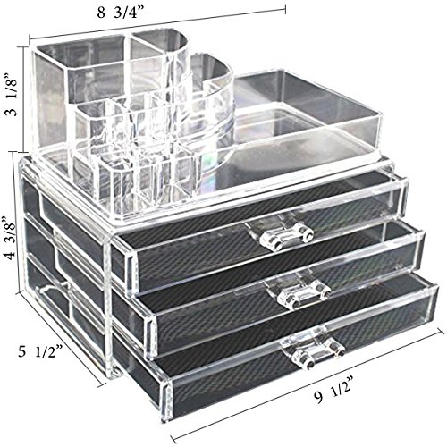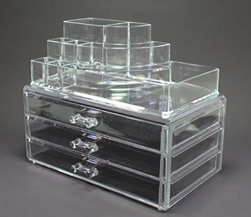 Clear Acrylic Cosmetics Makeup and Jewelry Organizer 3 Drawers with 8 Compartments Top Section (idea for Christmas , birthday gift ) ~...