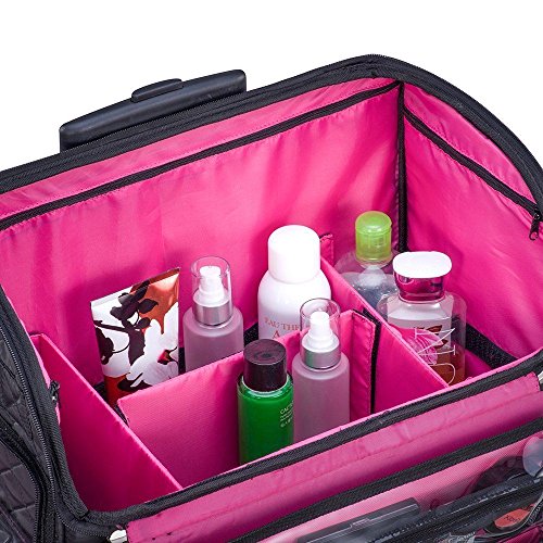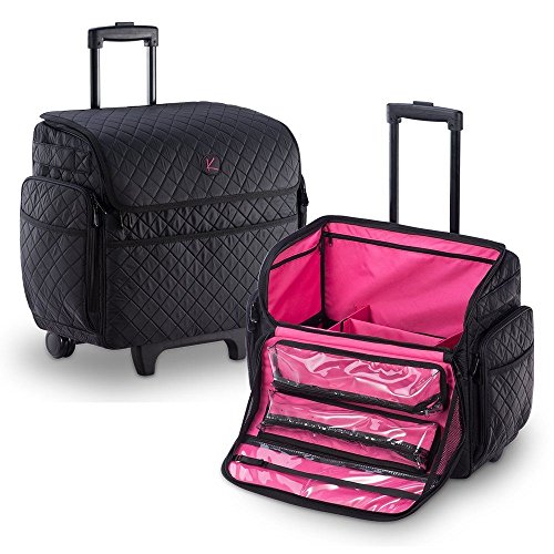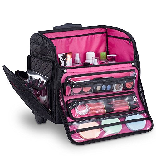- STYLISH, PORTABLE, LIGHTWEIGHT ROLLING BEAUTY BAG! This versatile cosmetic storage case on wheels was designed with you in mind. Constructed of superior quality materials, is an ideal gift for any beginning or professional makeup artist. Includes a retractable telescopic trolley and in-line skate wheels for smooth transportation.