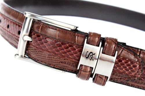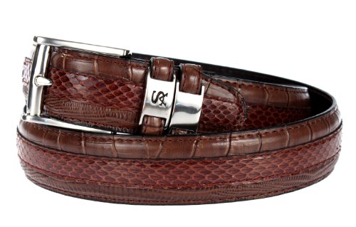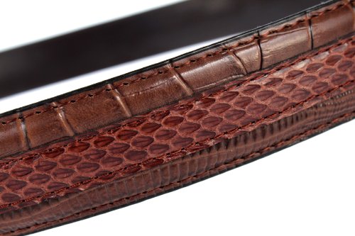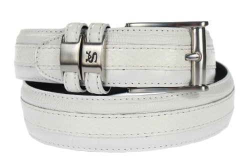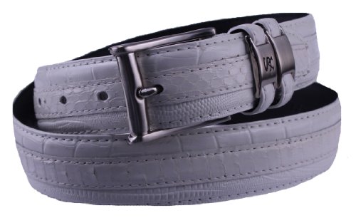 Product DescriptionCutting edge style has snake skin with leather embossed croco and lizard prints. It features double keepers, a signature logo, and a nickel brushed buckle with a 35mm width.0