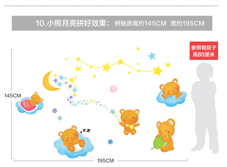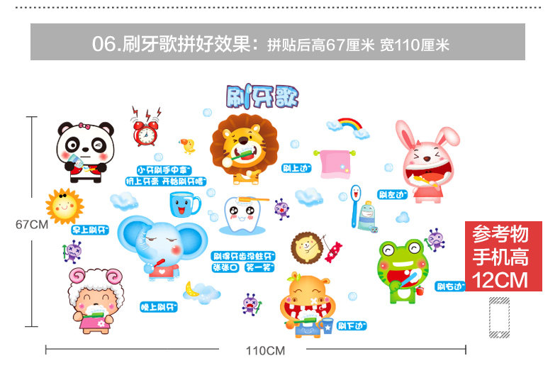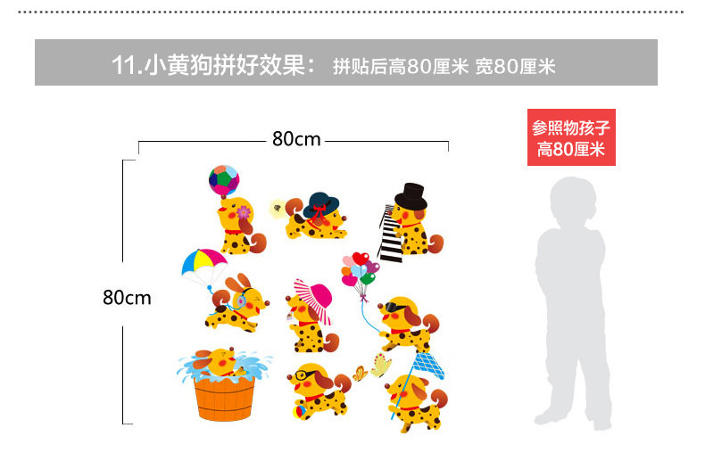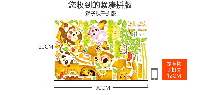 Brand: small Aiai Wall Stickers Type: waterproof wall stickers Material: environmental protection PVC, back with plastic Style: Modern Chinese Pattern: Cartoon animation Pricing Unit: set Paste style: flat wall stickers Size: Please refer to the effect of detailed dimensions (unit: cm) Sizes, "you receive the imposition compact size" and "Collage good size reference" Our tile size for reference only, you can combine according to room size freedom
