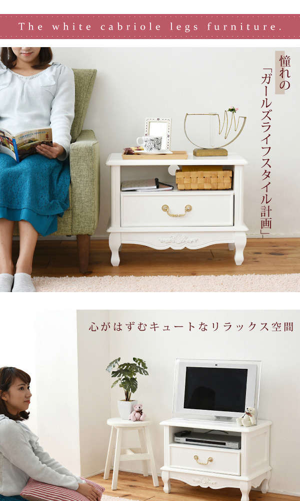 ●ヨーロッパ調家具 かわいい 可愛い コンパクト 白 ねこ脚 猫足 白家具 一人暮らし 薔薇 バラ バラレリーフ 天然木 マホガニー おしゃれ