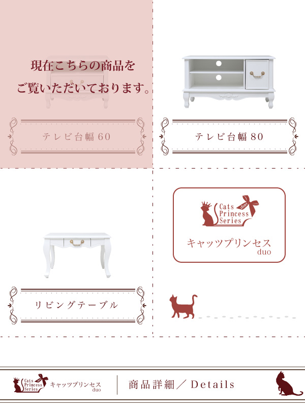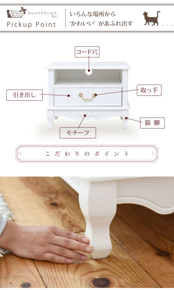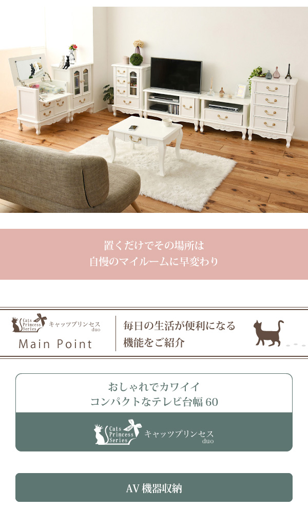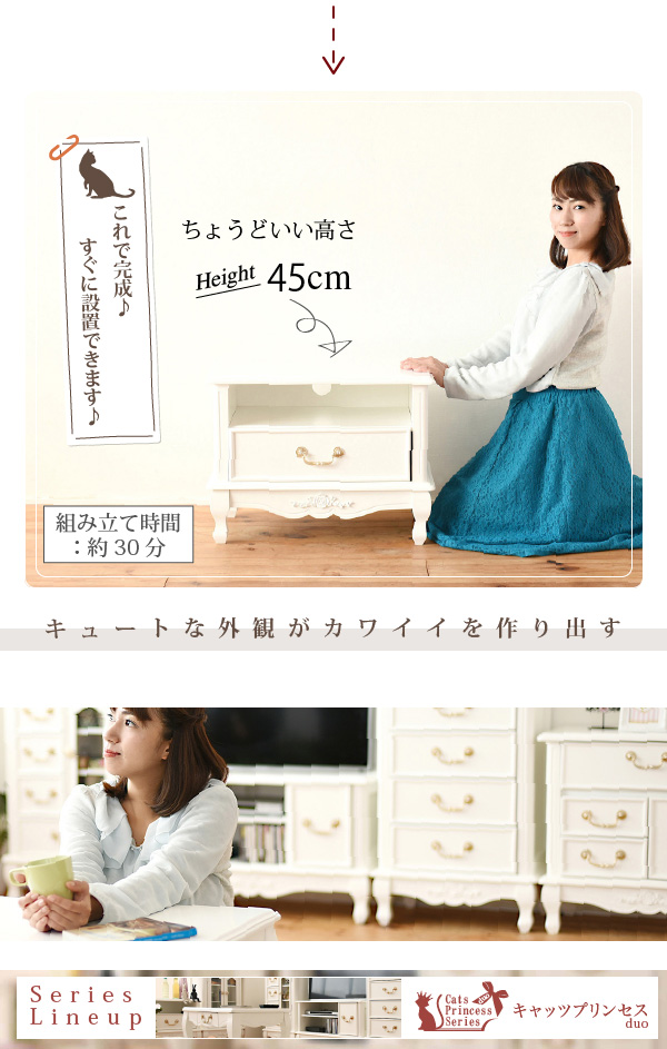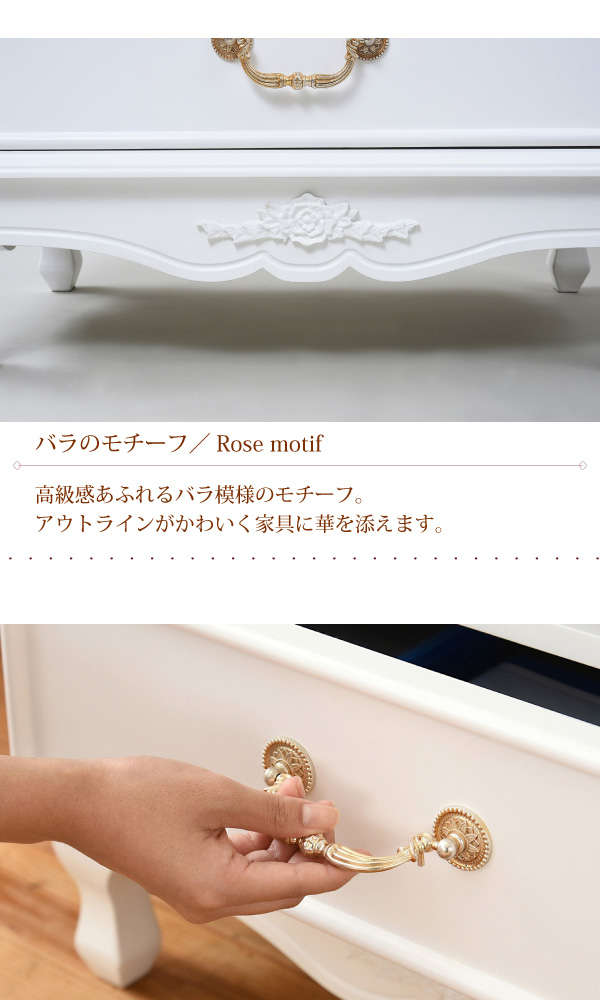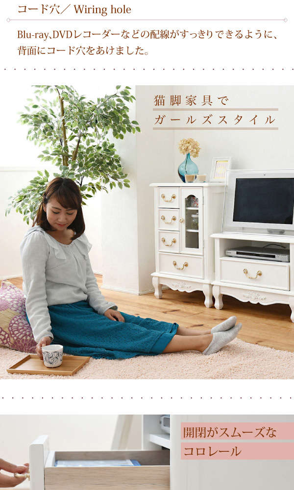 ●薔薇のレリーフ、かわいい猫脚、アンティーク調の取っ手がお姫様な気分を演出するキャッツプリンセスシリーズのTV台小