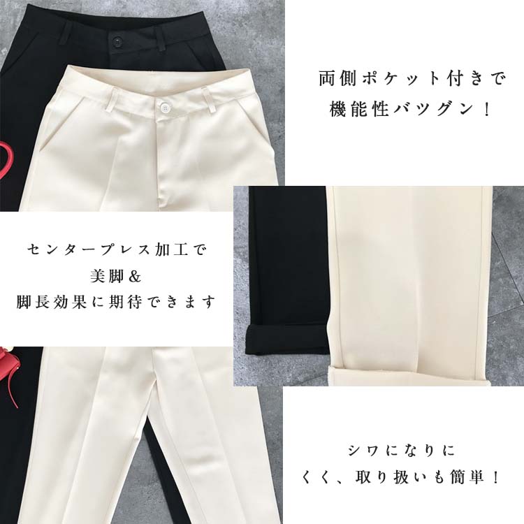 | オールシーズン対応!アクティブに働くOLさんにおすすめパンツ。足首を魅せるアンクル丈は、シャツやカットソーと合わせるだけで簡単にお洒落でこなれ感のあるコーデに! センタープレス加工で美脚&脚長効果に期待できます。オフィスにリクルート、通勤などなど。フォーマルなシーンにしっかり対応してくれるキレイめパンツ! | |