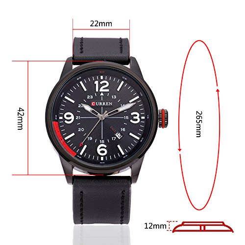 -. Feature : Round watch stainless steel back case with featuring hour marks and auto date / Sport outlook, alloy case, stainless steel back case, quality scratch resistant glass. / Quality pu leather band design, durable and pratice, gives you a new classic definition. / Suitable for social, outdoor sports casual, running, climbing, cycling and other activities / Living waterproof design (Not suitable for swimming, diving, shower etc)