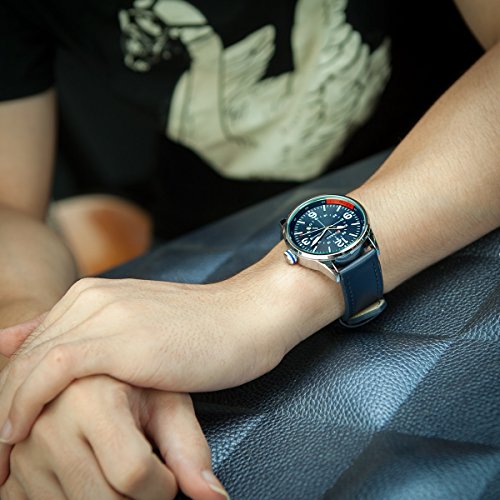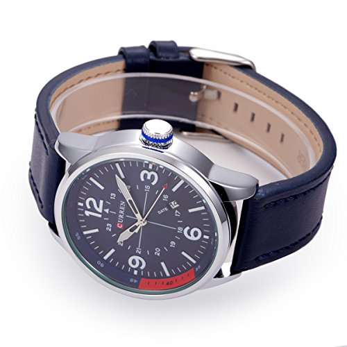 -. Title : Curren Mens's Sport Watches Big Dial Auto Date Leather Band Analog Quartz Wrist Watch-Dark Blue