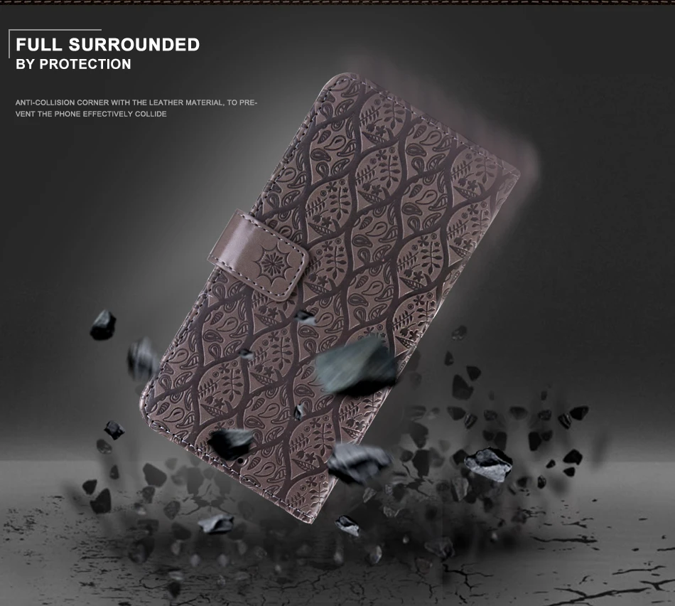 Features:3D Vintage Totem Flower Pattern Printed Wallet PU Leather Phone Case