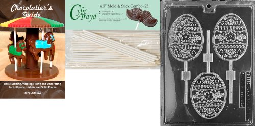 Cybrtrayd 45St25Bk-E120 'Large Egg Lolly' Easter Chocolate Candy Mold with 25 4.5-Inch Lollipop Sticks and Chocolatier's Guide