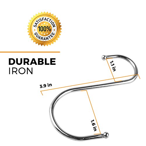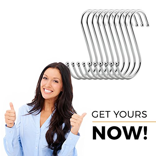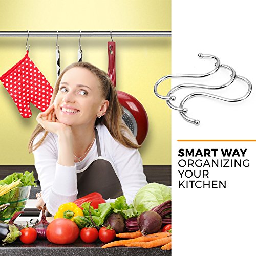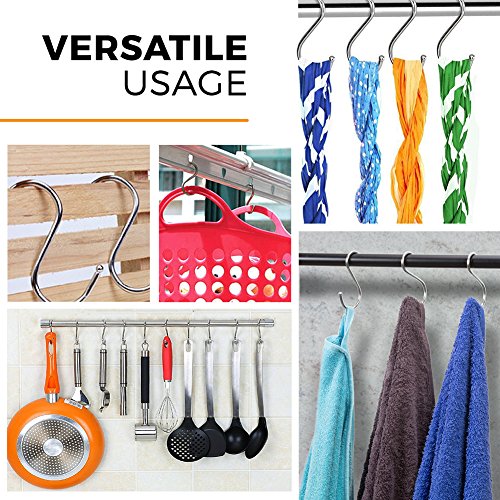 - VERSATILE USAGE – The safe round hook ends and curved shape of the S-hooks let you hang pots, pans, spatulas, and other equipment. Great for kitchen, bathroom, garage, bedroom, and more.