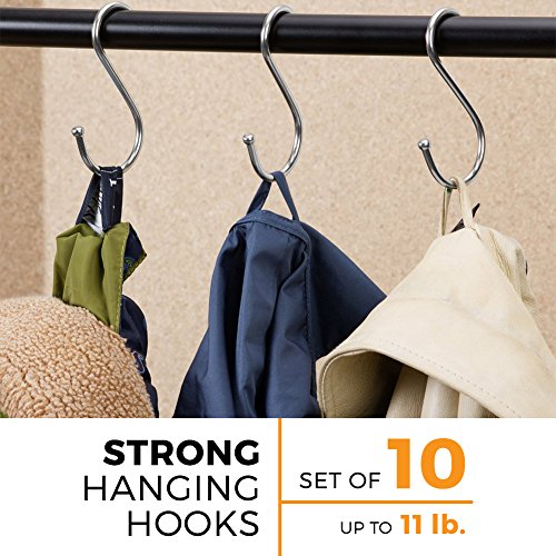 - STRONG HANGING HOOKS - Smart S Hook (TM) is a set of 10 S shaped hooks. It creates an efficient storage space for you to hang anything up to 11 pounds per hook for a more organized and easier access.