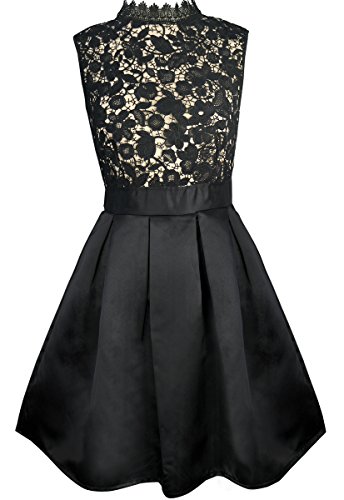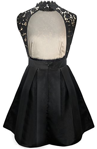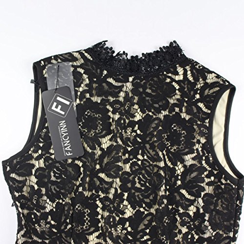 Title : FANCYINN Women Turtleneck Sleeveless Lace Floral Mini Skater Cocktail Dress Black M