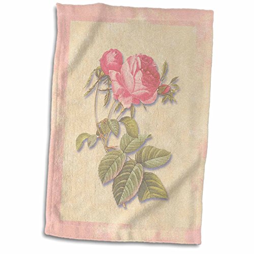 3D Rose Victorian Dark Pink Roses on Antique Look Paper Background Light Pastel twl_186921_1 Towel, 15" x 22"