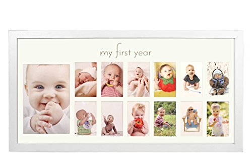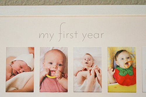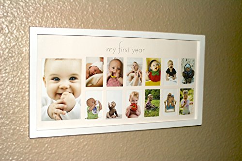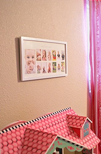 The lovely snow white mat comes printed with "My First Year" and is acid-free so it will not damage your treasured memories. The durable lightweight design makes hanging this frame a snap and no special anchors are required.