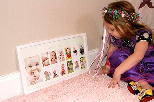 Baby's First Year Frame in Elegant White Natural Wood - My First Year Baby Picture Frame for Photo Memories