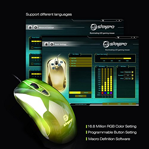 SAREPO Gaming Mouse Programmable Macro LED Gaming Mice Up to 4000 DPI Omron Switches for Pro Game Notebook PC Laptop Computer (Golden)