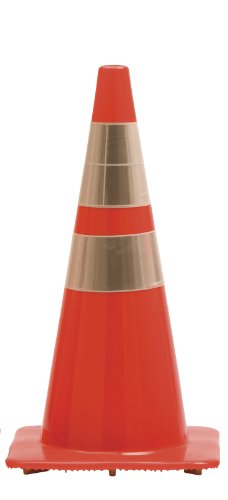 Work Area Protection 28PVCS Polyvinyl Chloride Standard Traffic Cone with 6" and 4" HIP Reflective Collar, 10-1/2" Diameter x 28" Height, Fluorescent Orange