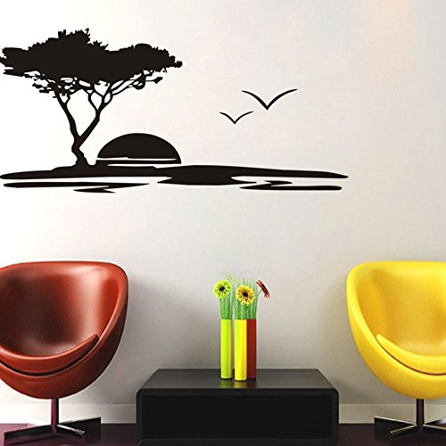 -. Title : DCTOP Removable Vinyl Big Tree And Seagulls Nature Wall Stickers Seaside Sunset Scenery Living Room Wall Mural