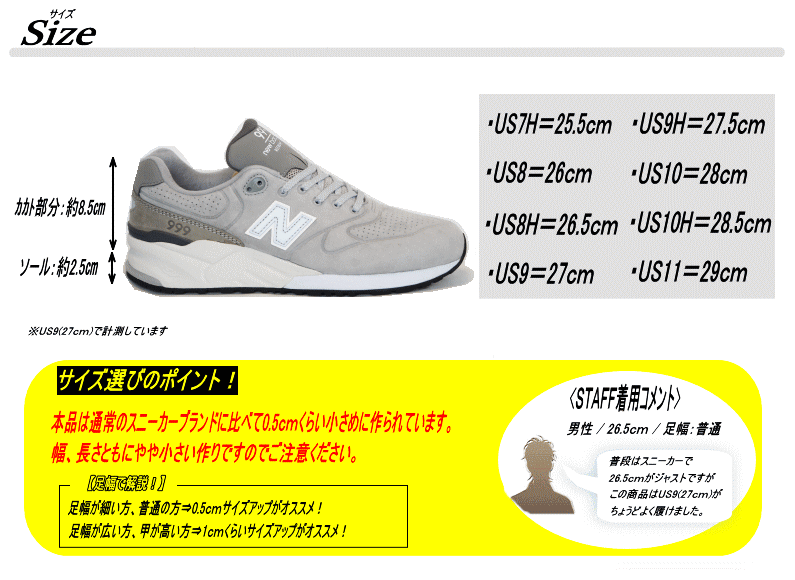 | サイズ | 作り⇒やや小さめ 【サイズ選びのポイント!】 足幅が細い方、普通の方⇒0.5cmくらいサイズアップがオススメ! 足幅が広い方、甲が高い方⇒1.0cmくらいサイズアップがオススメ! |