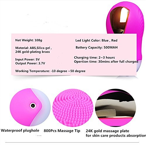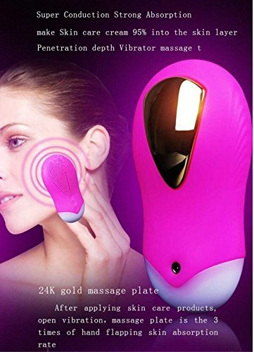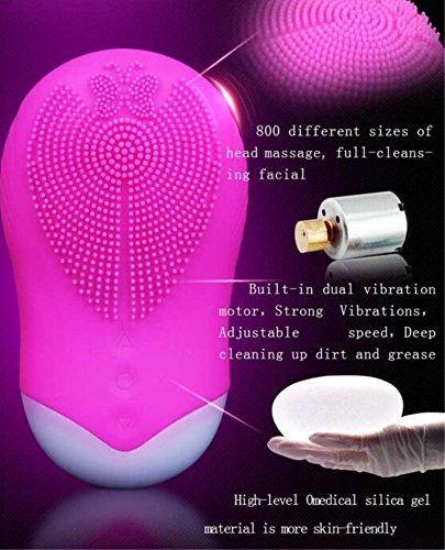 CHUHUAYUAN Portable Silicone Facial Brush Electric Rechargeable Dual Sided Brush Cleaner Silicone Facial Beauty Device (Rose Red)