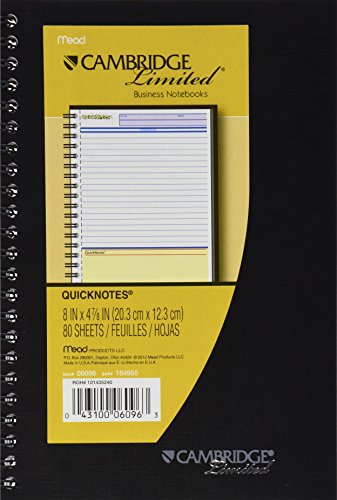 Mead Cambridge Wirebound Business Notebook, Ruled, 4-7/8 x 8 Inches, White, 80 Sheets per Pad (06096)
