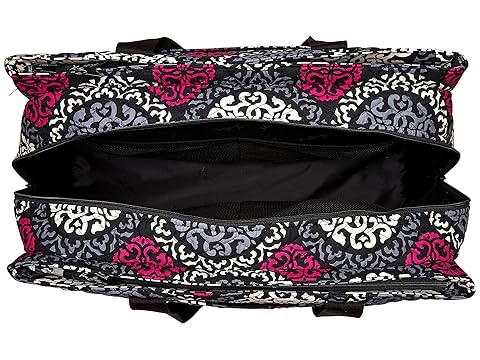 SKU: #9037099 Wherever the destination, carry style and convenience with this plush Vera Bradley® Triple Compartment Travel Bag. Made of quilted cotton. Zipper closure. Dual carrying handles. Exterior boasts two zipper pockets and multiple slip pockets. Signature logo embossed detail in front. Flat base to provide upright structure. Lined interior features multiple slip pockets. Imported. This product may have a manufacturer#x27;s warranty. Please visit the manufacturer#x27;s website or contact us at warranty@support.zappos.com for full manufacturer warranty details. Measurements: Bottom Width: 19 in Depth: 6 1?2 in Height: 12 1?2 in Strap Length: 28 in Strap Drop: 13 in Weight: 1 lb 10 oz |