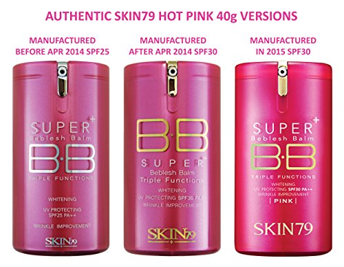 -. Binding : Misc. -. Brand : SKIN79 -. EAN : 8856623420921 -. Feature : Skin79 Hot Pink Super Plus Bb Cream 40g Spf25 Pa++_pump / It is three effects funtional blebesh balm / effective in whiteneing, wrinkle improvement / soft and dry all day without gooey skin -. Label : Skin79 by Wizcoz -. Manufacturer : Skin79 by Wizcoz -. Model : SK-79 -. NumberOfItems : 1 -. PackageQuantity : 1 -. ProductGroup : Beauty -. ProductTypeName : BEAUTY -. Publisher : Skin79 by Wizcoz -. Studio : Skin79 by Wizcoz -. Title : Skin79 Hot Pink Super Plus BB Cream 40g SPF30 pump